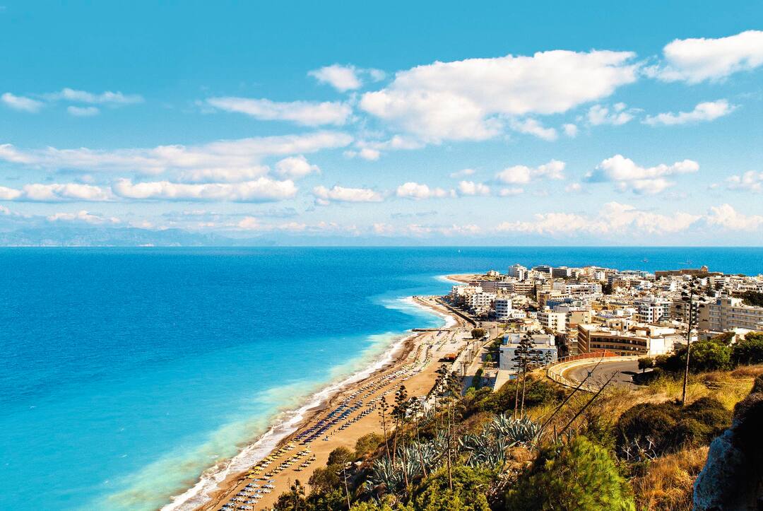 Ialyssos – AKA Trianda – is a small, laid-back place on the west coast of Rhodes. Hotels line the waterfront, while up in the village – about half-a-mile away – there’s plenty of traditional Greek charm in the tavernas. You’re in a top position in lots of ways here. There are ancient ruins in the pine-covered hills, the very lively Faliraki is close by, and Rhodes Town is literally just up the road.